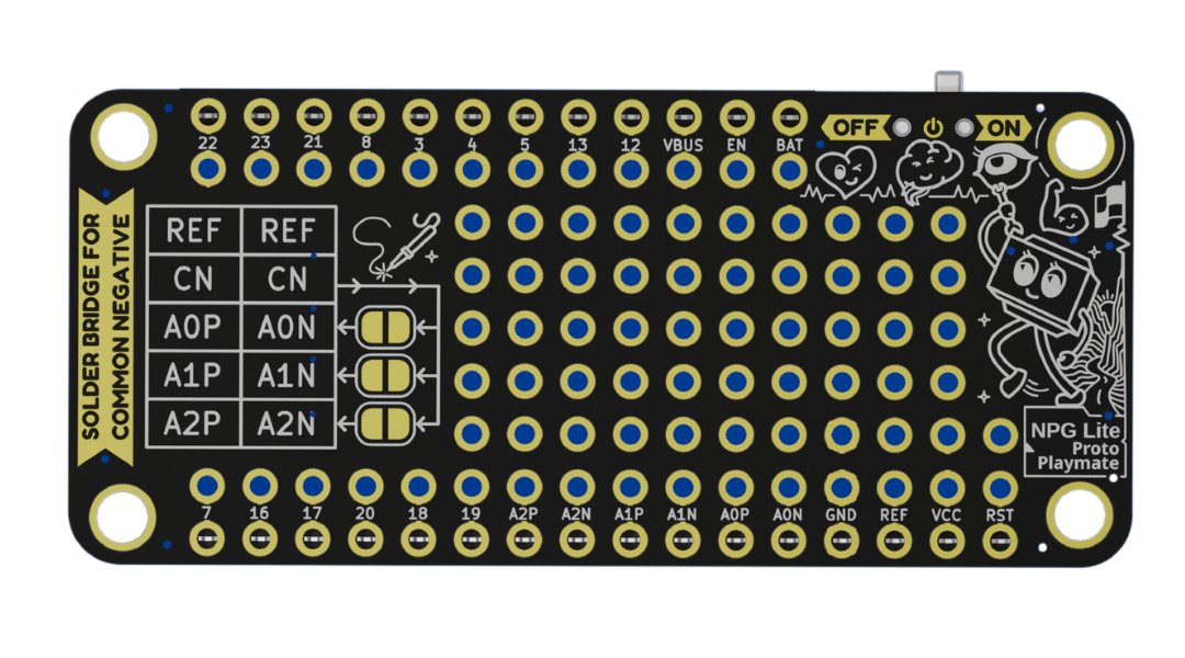 Kit ini membuat proyek neurosains kustom dapat diakses, memungkinkan pemula untuk segera mulai merekam sinyal biopotensial dan secara fleksibel mengintegrasikan sirkuit mereka sendiri untuk aplikasi HCI/BCI yang menarik. Proto Playmate dengan mudah terhubung ke papan NPG Lite, menyediakan ruang prototipe fleksibel untuk menambahkan komponen kustom, sirkuit, atau menguji desain baru tanpa wiring yang rumit atau memerlukan breadboard terpisah.